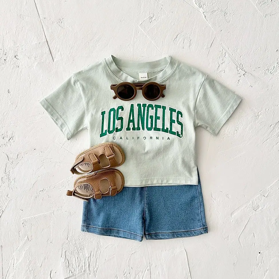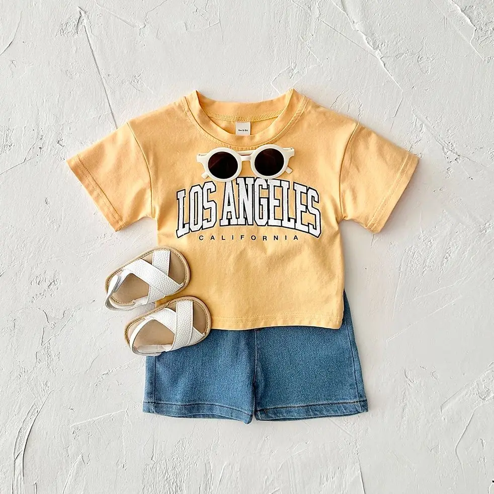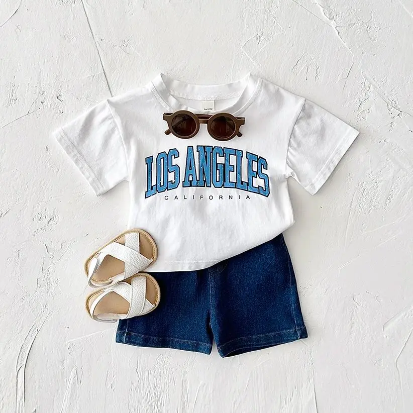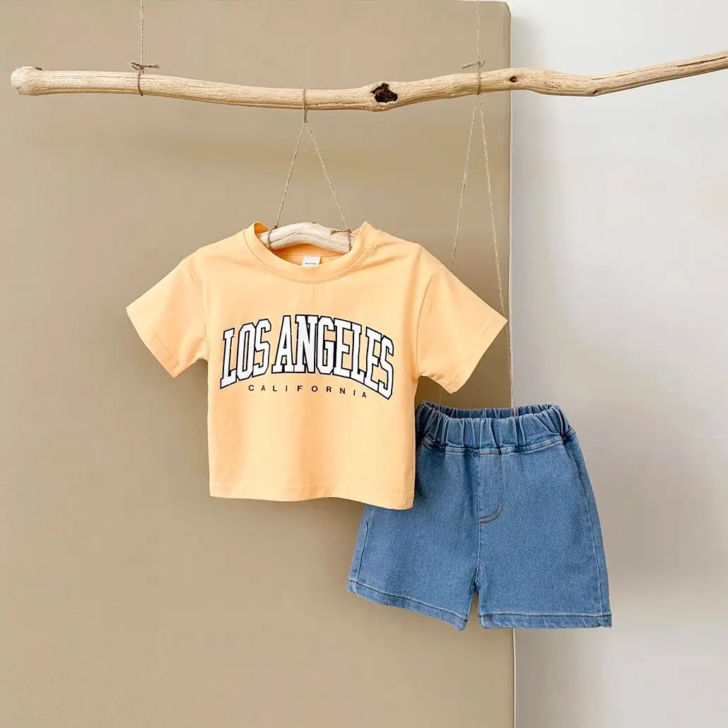 2PCS Baby Boys Clothes Toddler Outfit Sets Summer Newborn T-shirt+Denim Shorts Clothing Letter Print Casual 0-3Y Kids Clothes
