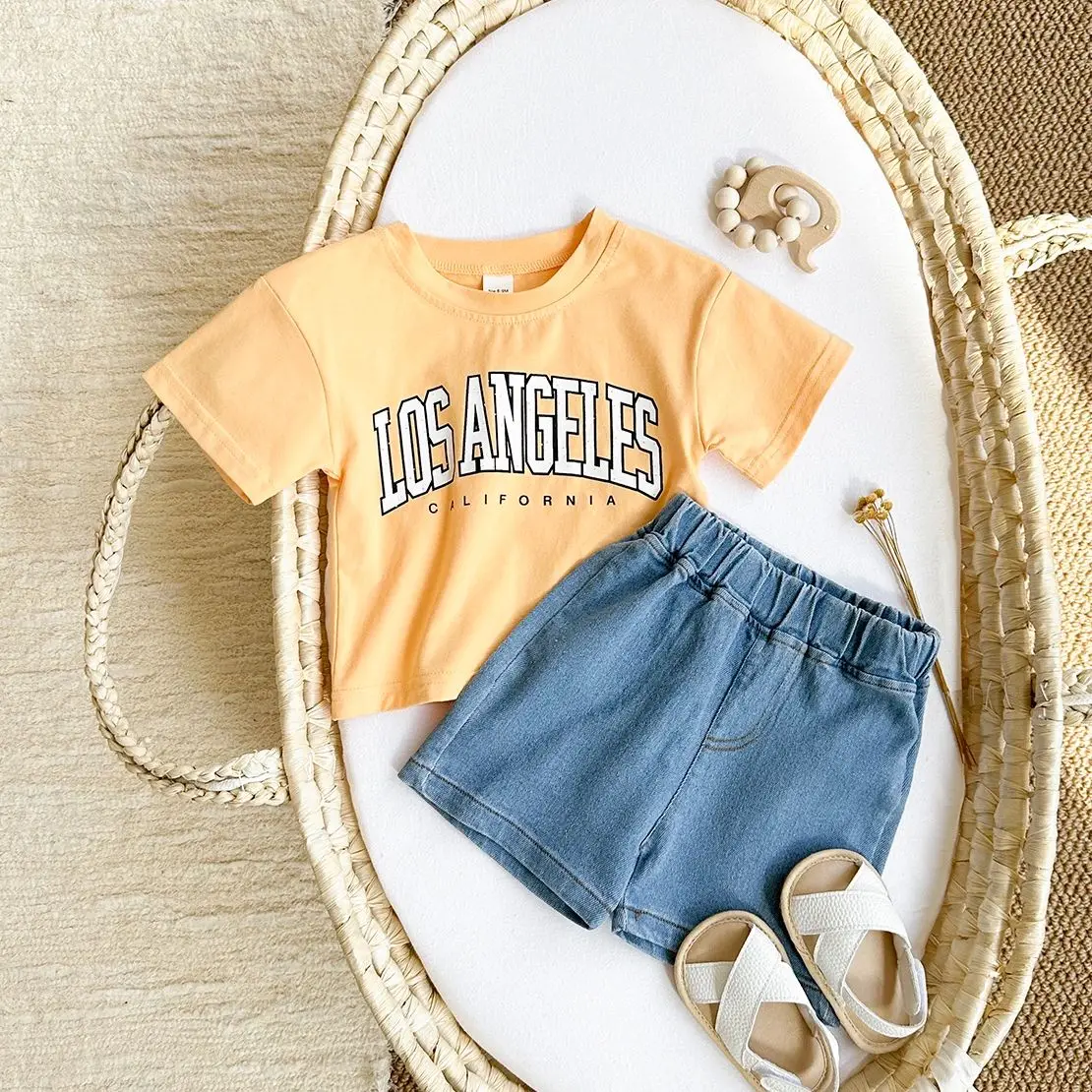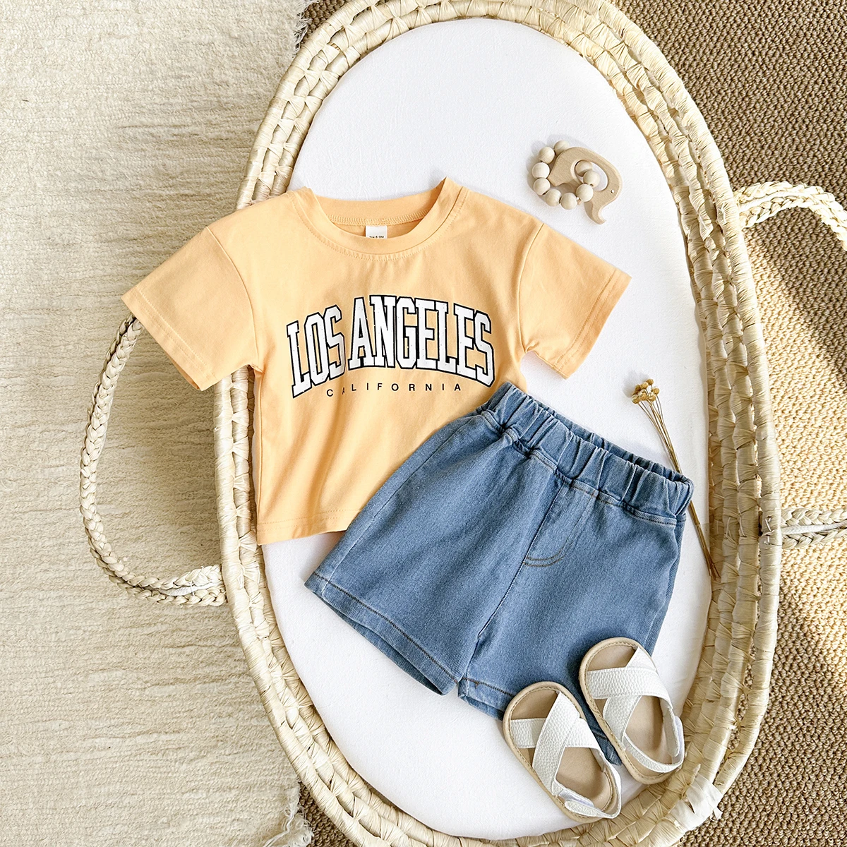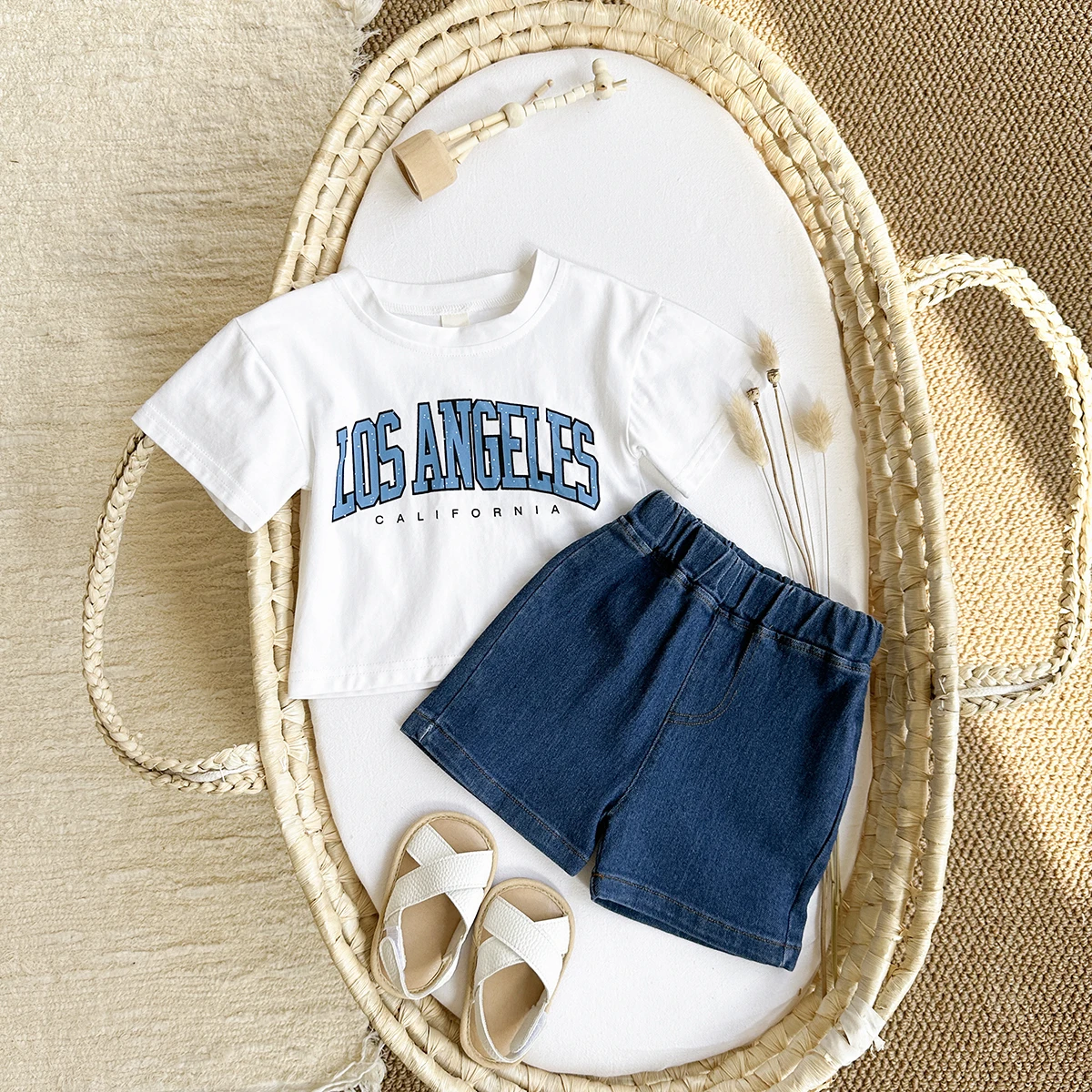 2PCS Baby Boys Clothes Toddler Outfit Sets Summer Newborn T-shirt+Denim Shorts Clothing Letter Print Casual 0-3Y Kids Clothes