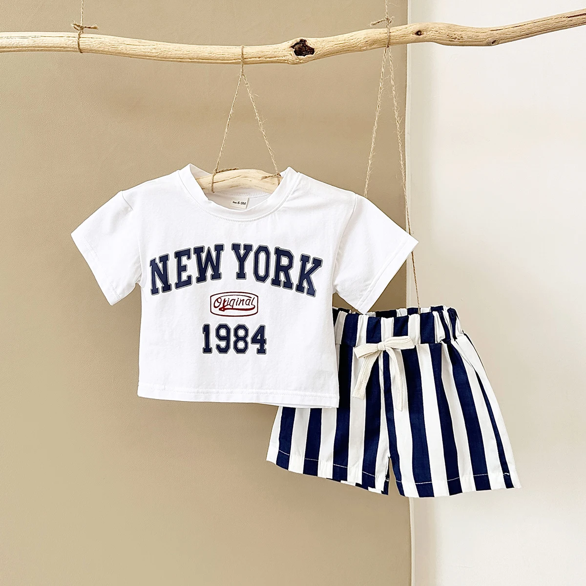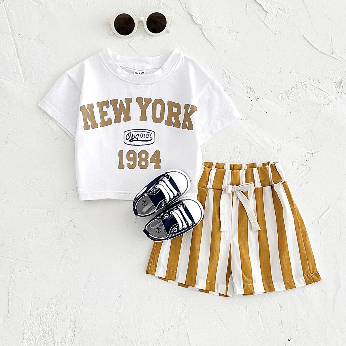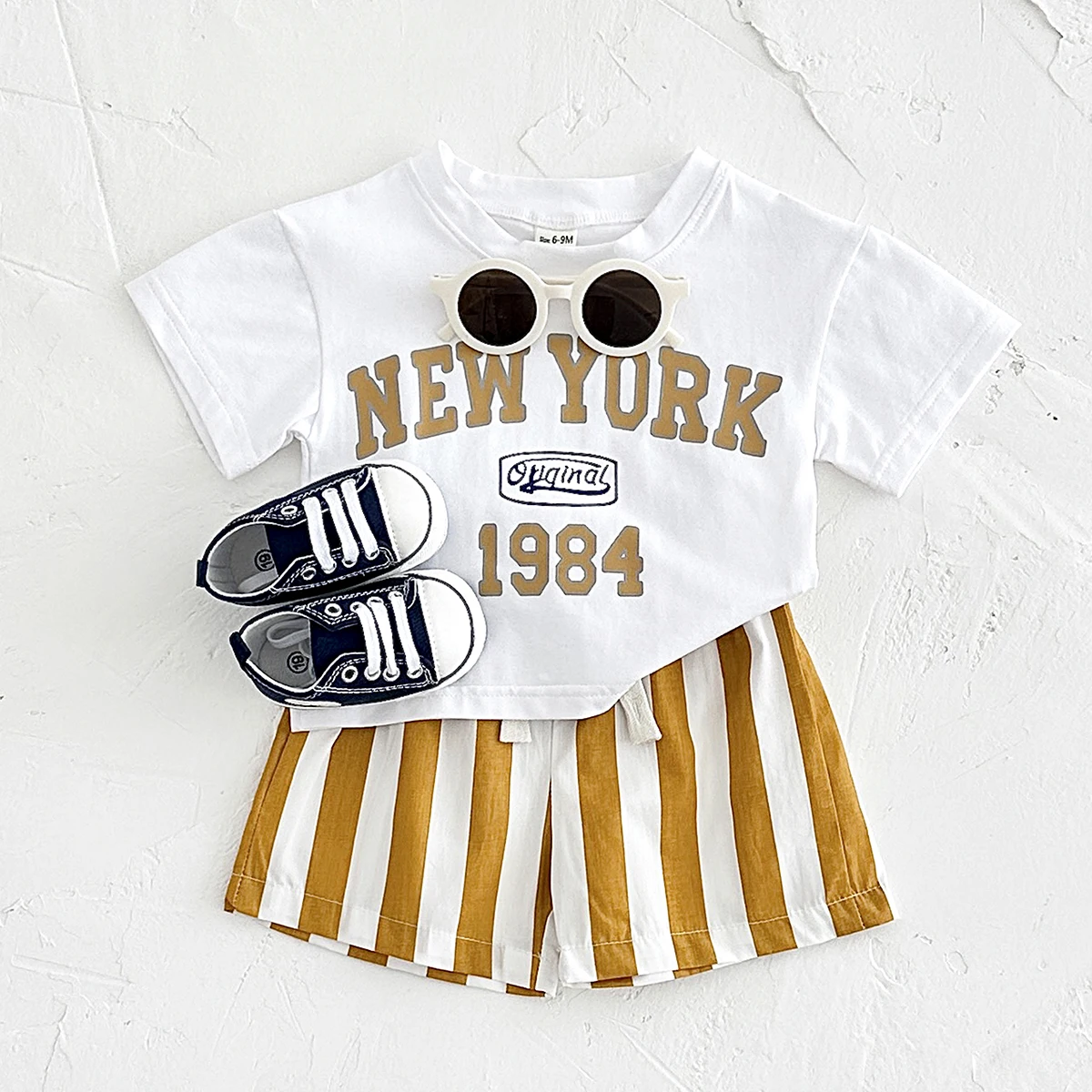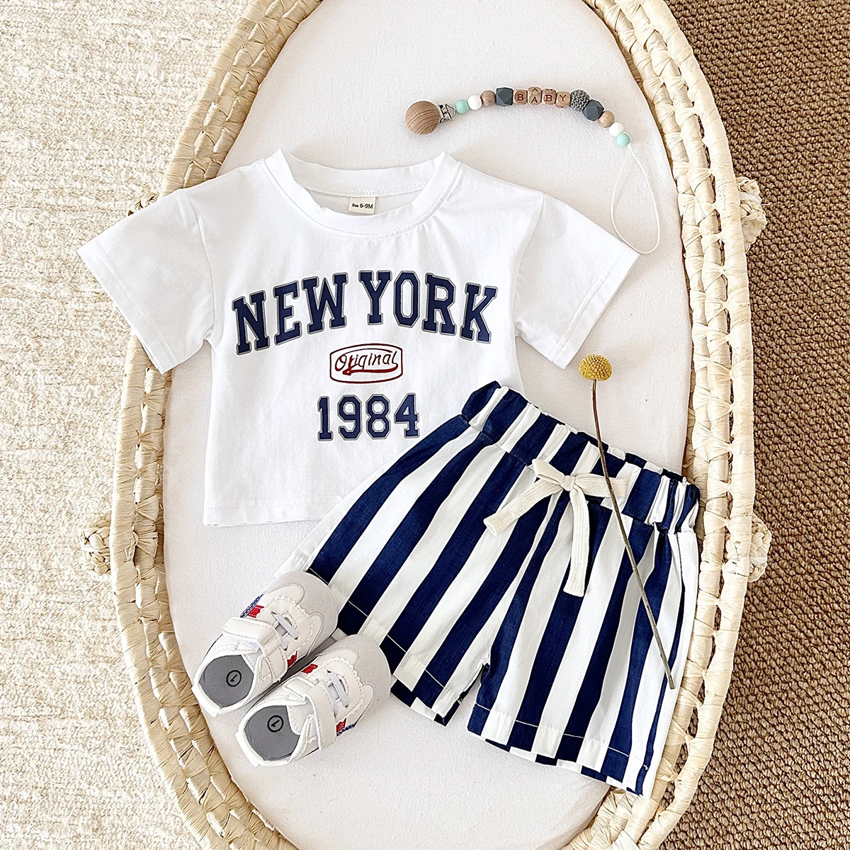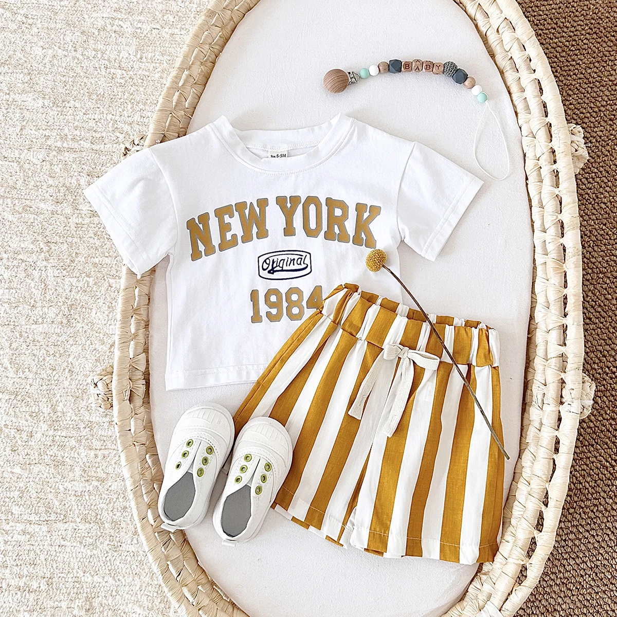 2PCS infant Outfit Suit 0-3Y Newborn Boys Clothes Sets New Summer T-shirt Baby Clothes Set Letter New York T-shirt Stripe Shorts